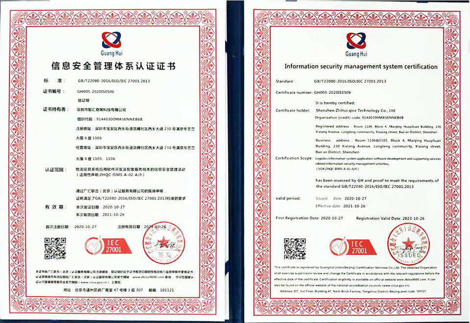 热烈祝贺深圳市智汇奇策科技有限公司顺利通过以下认证: