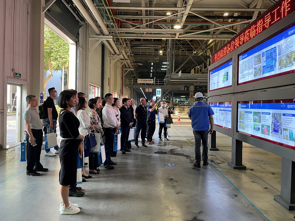 在宝能汽车工作人员的引导下,商会会员企业代表一起参观了宝能汽车集团全球总部和深圳超级工厂。该工厂占地100万㎡,年生产能力100万辆,主要生产“观致”牌乘用车。