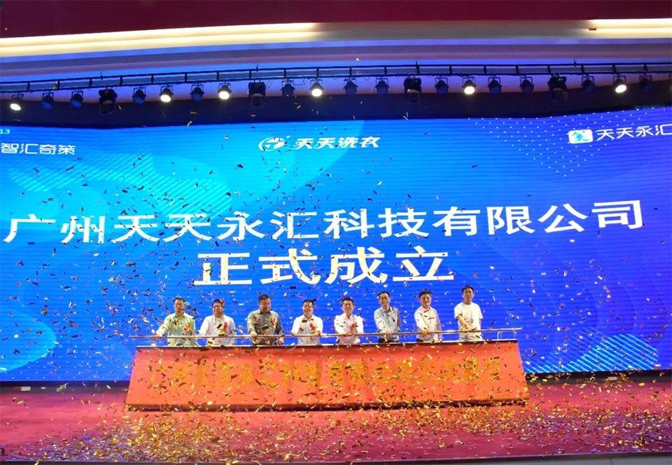 在嘉宾及媒体朋友们的热烈掌声与祝福声中,智汇奇策、天天洗衣以及天天永汇公司的有关领导共同按下启动杆,宣告广州天天永汇科技有限公司正式成立!