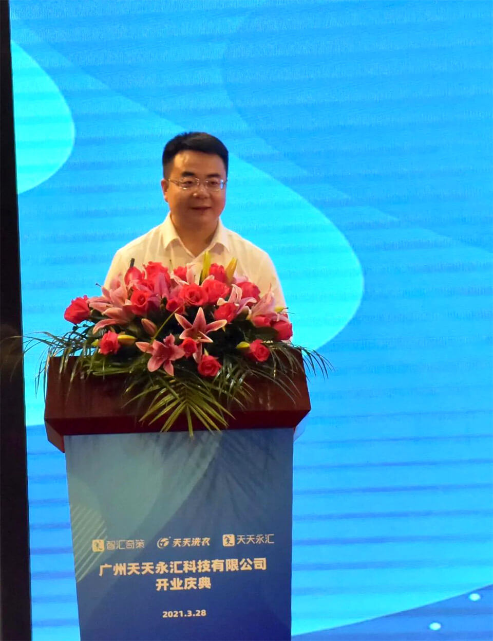 公司成立庆典上,深圳市智汇奇策科技有限公司董事长成林先生、广州天天洗衣科技有限公司董事长卢志基先生分别致辞。他们表示两家企业通过之前的业务相识、相知,并最终通过合资合作共同开拓未来的事业。天天永汇公司的正式挂牌运营,标志着合作双方更加深层次合作的完美开局。智汇奇策成董、天天洗衣卢董共同为天天永汇送上了美好的祝愿。