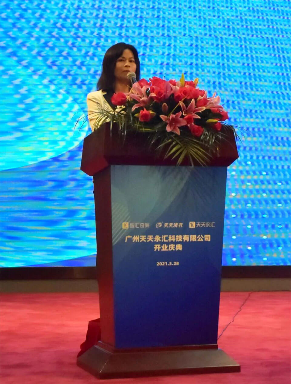 庆典仪式上,广州爱诗图皮具有限公司董事长何少英女士代表受邀嘉宾为广州天天永汇科技有限公司的正式成立表示祝贺,并与嘉宾们共同分享了数字化产业升级过程中的企业心得。