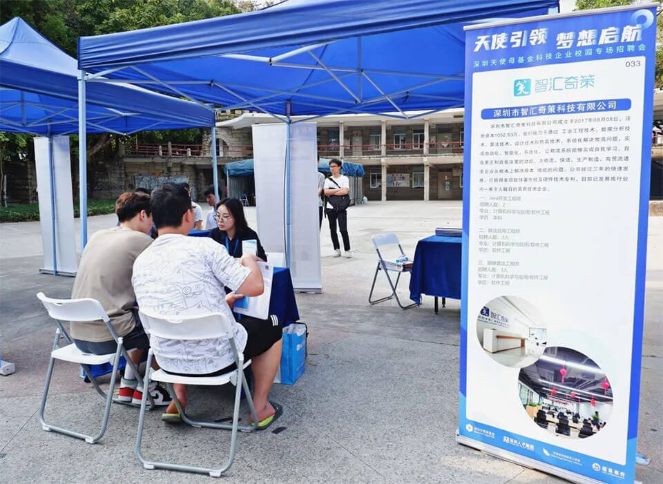 深圳市智汇奇策科技有限公司受深圳市天使投资引导基金管理有限公司(以下简称“深圳天使母基金管理公司”)邀请,于4月1日走进深圳大学,参加了由深圳天使母基金管理公司和深圳市人才集团有限公司主办的举办的“深圳天使母基金首次科技企业校园招聘会”。